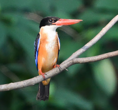 Whilst checking a patch of trees where I had seen a male Siberian Blue Robin last week I heard an unfamiliar call - a rather flat, nasal "tik" repeated several times. I was really unsure what might be making the call, but knew that it was probably something unusual as I've pretty much mastered the calls of the common residents and migrants that I encounter in Bangkok. I soon located the bird making the call and was a bit surprised to find that it was a